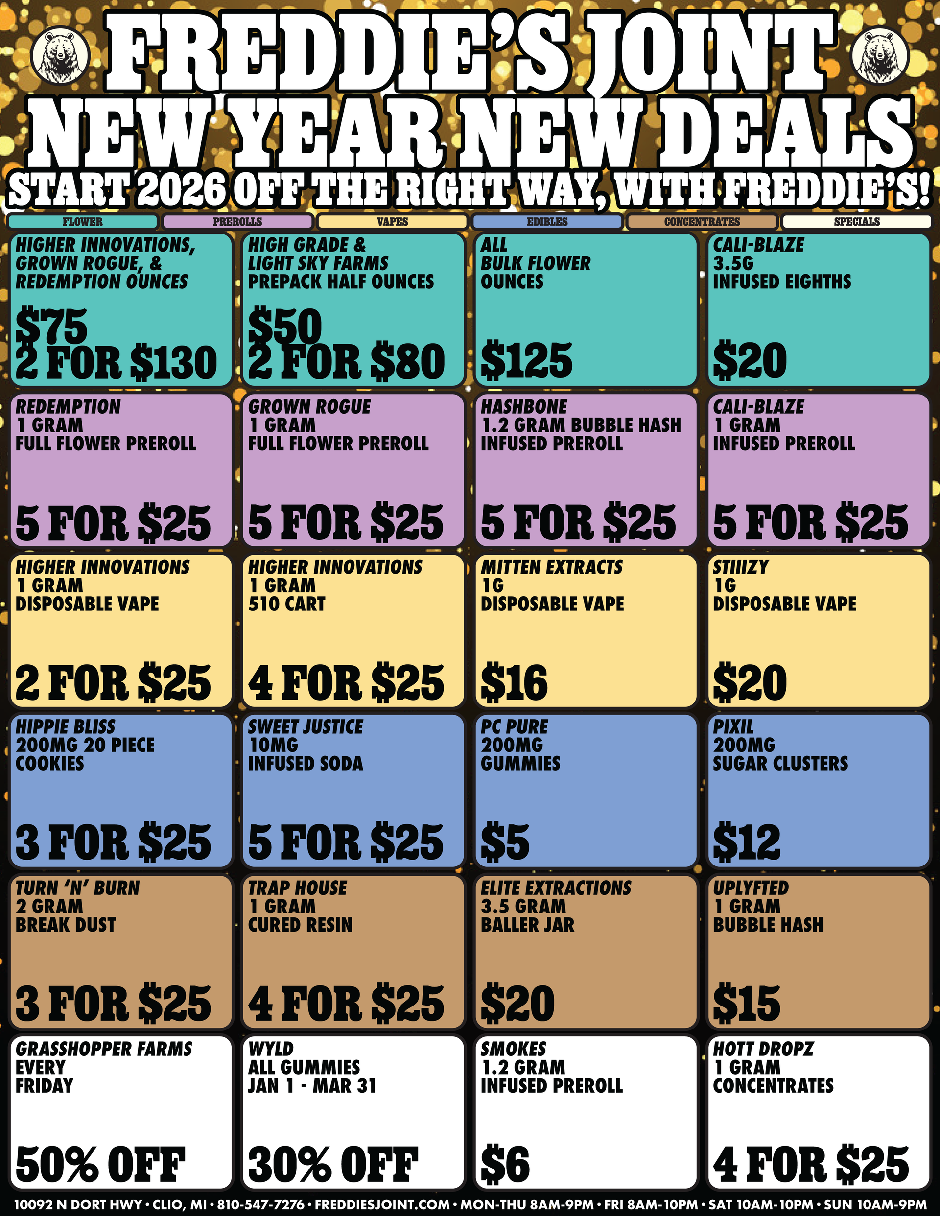 Freddie's Joint is a cannabis outlet with the lowest prices in town on a wide and competitively priced selection of top quality flower, prerolls, vapes, edibles, and more. We provide the best service, the best value, and the most passionate budtenders. When you walk into our joint, you’ll know that it’s not all about business here – it’s about the people. If you don't leave happy, we're not happy. Feel Good at